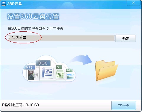創(chuàng)建以后會告訴您云盤存放的位置,并為此創(chuàng)建一個目錄,如果您希望改成其他目錄,可以點更改,請不要將云盤目錄設(shè)置到系統(tǒng)盤C盤。 建議使用:d:\360云盤 這個目錄,后面介紹的程序也是以這個目錄為默認(rèn)目錄的。