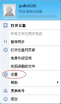 右鍵點擊云盤圖標(biāo)——設(shè)置: