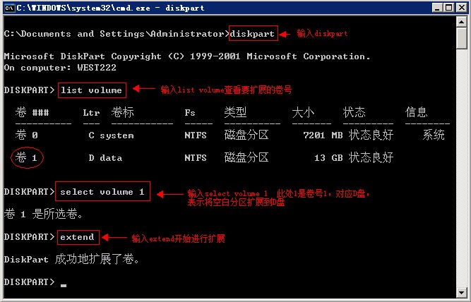 依次輸入以下命令: diskpart 回車 操作流程如圖(紅色方框中是輸入的命令):