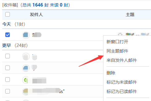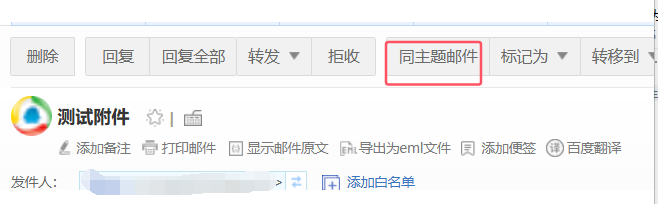 點開郵件詳情,上面也有“同主題郵件”標簽。