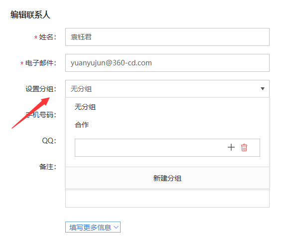 通訊錄點具體聯系人可看“來自發件人郵件”。